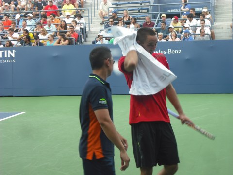 JC: Well, the Open is the only slam that ball persons actually throw balls to the players instead of rolling them.