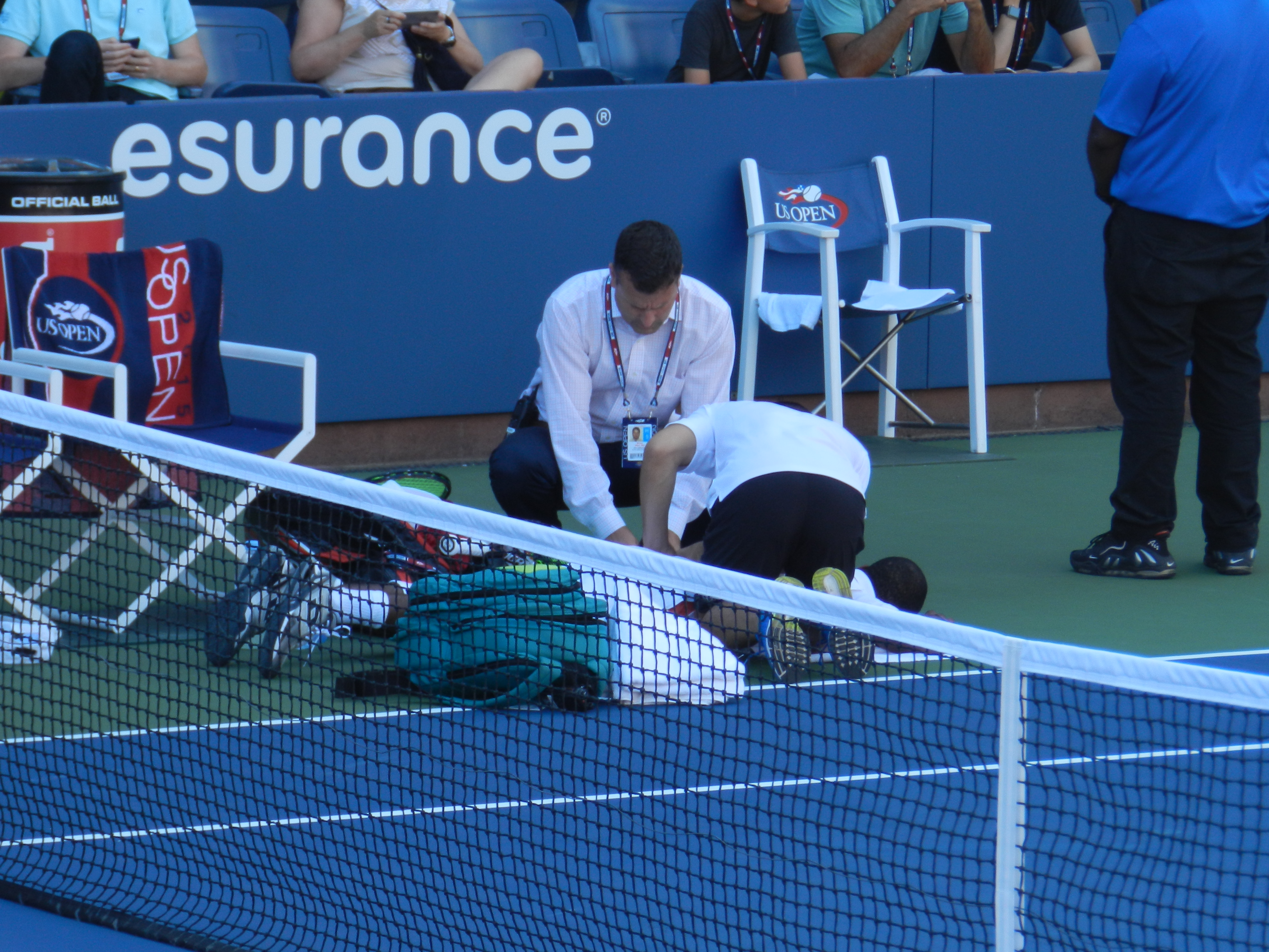 Young took a medical timeout after losing the second set at love and walked gingerly–almost like a baby taking his first steps–after he rose from the court.